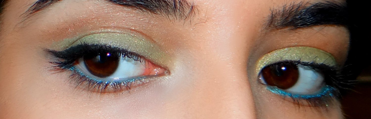 Eyes: Urban Decay Primer Potion in Original, Shameless Shana eye shadow in the crease from Shady Lady by the balm (it's a warm bronze kind of brown), Lime Green shimmery eye shadow on the lid by Beauty Treats (any lime green or bright neon type yellow green would do). Black Gel liner on the outer corners only by Studio Gear, Urban Decay 24/7 black pencil called Perversion for tight lining, Urban Decay 24/7 pencil in Electric for water line and Mabelline Falsies Volume express Mascara on top and bottom lashes